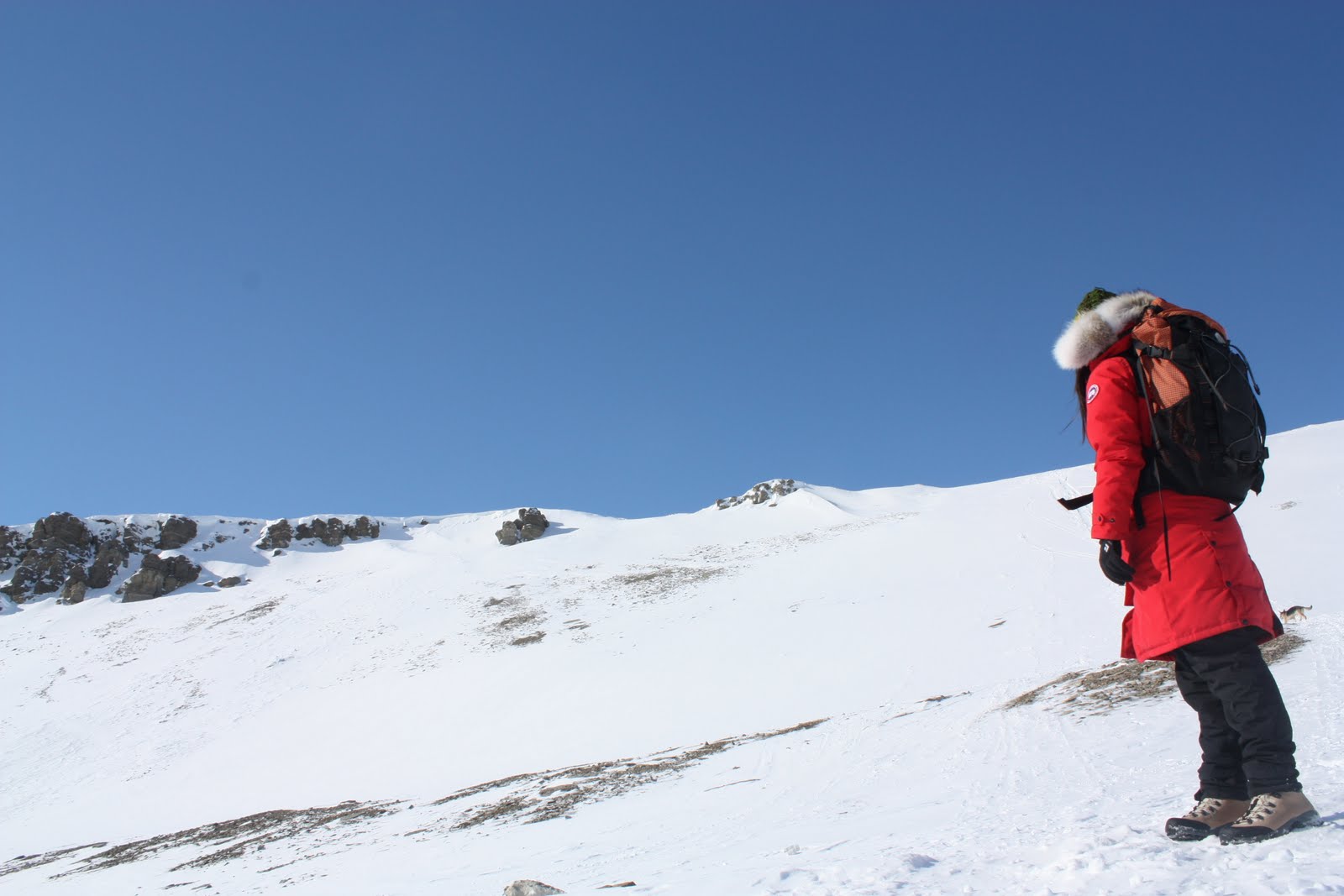 We started off Friday by deciding to conquer the mountain that’s been staring down on us ever since the say we came to Resolute. Signal mountain was a large and intimidating mountain, its snow covered rock face deceivingly masking the steep incline that’s shaken the confidence of many mere mortals. But are not any mortals, we are Andrew and Andrea, the slightly above average mortals, and no matter how high the mountain was, it paled in comparison to the size of our will and determination. Aided by 3 local kids a dog, we made the perilous climb and were rewarded by the amazing view of the town from the top of a mountain.